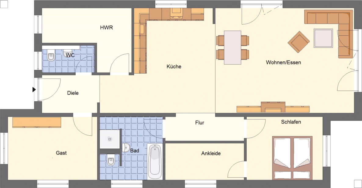 • Zusatzausstattungen wie Kaminzug oder elektrische Rollladen planbar (Mehrkosten).